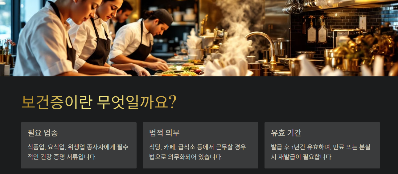 보건증은 식품업, 요식업, 위생업 관련 업종에서 근무할 때 건강 상태를 증명하기 위해 필요한 서류입니다. 특히 식당, 카페, 급식소, 제과점 등에서 일할 경우 법적으로 보건증 소지가 의무화되어 있습니다.