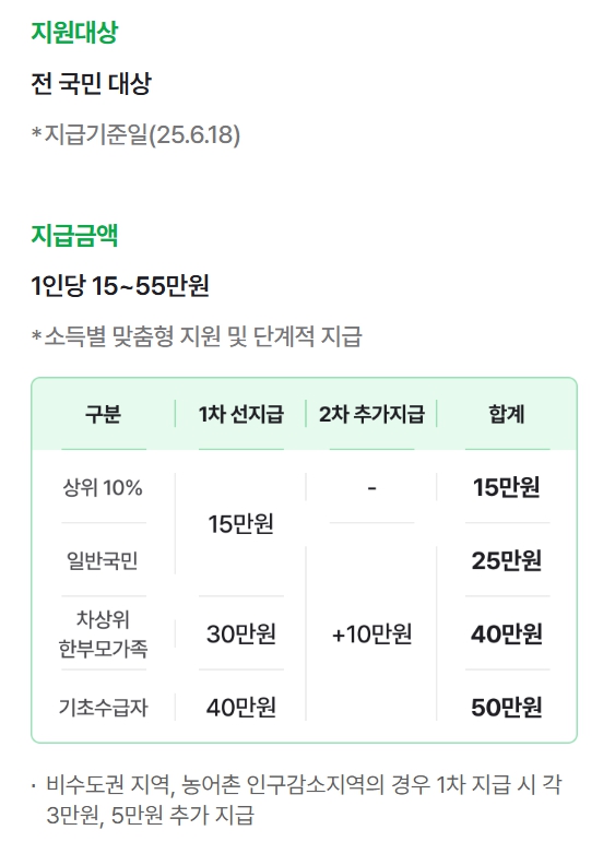 | 일반국민 | 15만 원 | 10만 원 | 25만 원 |