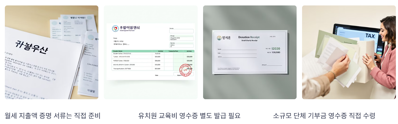 - 의료비, 교육비 등 일부 자료는 누락될 수 있으므로 별도 영수증 제출 필요