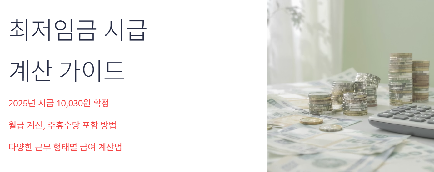 2025년 최저임금이 10,030원으로 확정되면서 많은 분들이 "내 월급은 얼마나 받을까?", "주휴수당은 어떻게 계산하지?"라는 질문을 갖게 됩니다. 이 글에서는 최저임금 시급 계산기를 활용하여 2025년 기준 주휴수당 포함 시급, 월급, 주급 계산법을 쉽고 정확하게 알려드립니다.