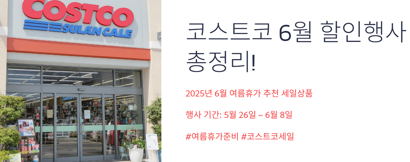 다가오는 여름휴가 시즌, 가족 여행과 캠핑, 바캉스 준비를 계획하고 계신가요? 그렇다면 2025년 6월 코스트코 할인행사를 절대 놓치지 마세요! 이번 달에는 여름철 필수 용품부터 가전제품, 그로서리, 생활용품까지 다양한 품목이 대폭 할인 중이며, 특별한 혜택도 함께 제공되고 있습니다.