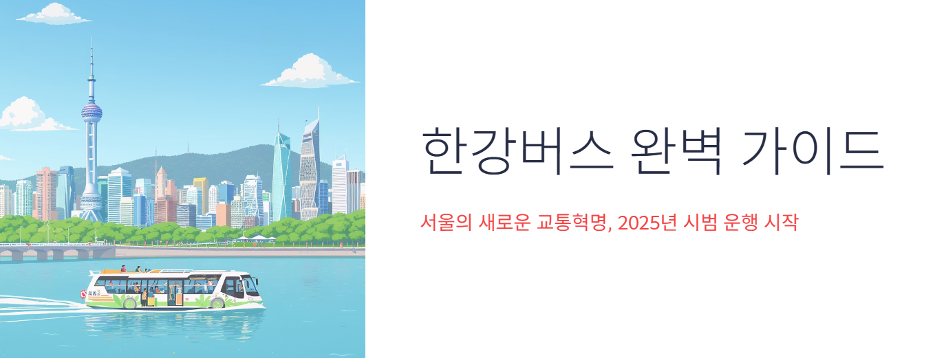 서울의 새로운 수상 교통수단, 한강버스가 2025년 시범 운행을 시작하면서 교통의 패러다임이 바뀌고 있습니다. 도심 교통 혼잡 완화, 친환경 이동수단 확산, 그리고 관광 인프라 확대까지 한 번에 잡은 이 프로젝트는 많은 시민과 관광객들에게 주목받고 있습니다. 이 글에서는 한강버스 노선, 운항정보, 선착장 위치, 요금 안내를 중심으로 상세히 소개해드리겠습니다.