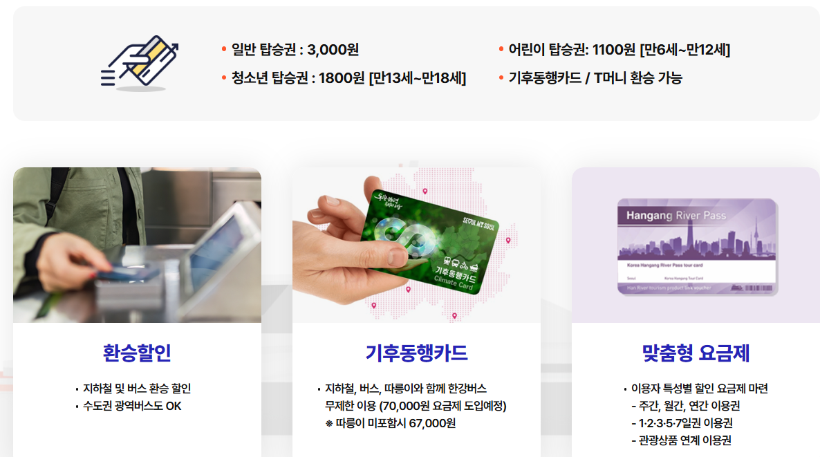 - 지하철, 버스, 따릉이, 한강버스 무제한 이용